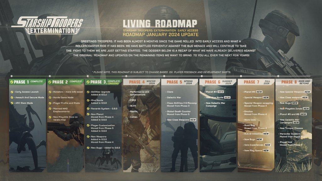 WEB This dossier provides you troopers with insights into what lies ahead potential trooper movements. It represents our latest intel on whats coming. WEB Learn about the latest intel on the Bugs invasion of Valaka and the Federations response in Starship. WEB A new updated roadmap is here for STE. WEB Theyve now released an updated roadmap for the year to come that details their plans for 2024 going..